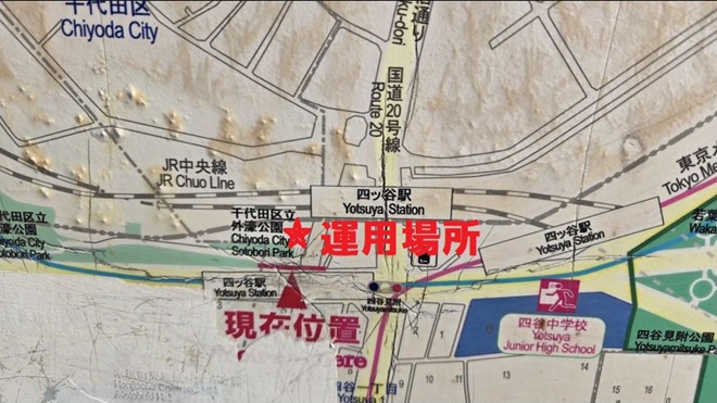 駅の所在地は新宿区ですが駅に隣接した外濠公園(千代田区)入口付近にて30分程度の運用でした。