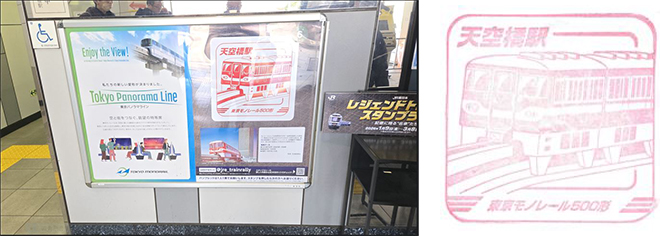 左: 天空橋駅スタンプ台 右: 天空橋駅500形