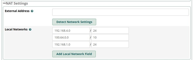 なお、Tailscaleにルーティングする際は100.64.0.0/10をLocal Networkに設定すれば External Addressは不要(空欄でOK)です。