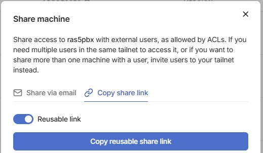 ②各局が提供しているTailscale invite linkから各局のPBXを自局のVPN内に登録する