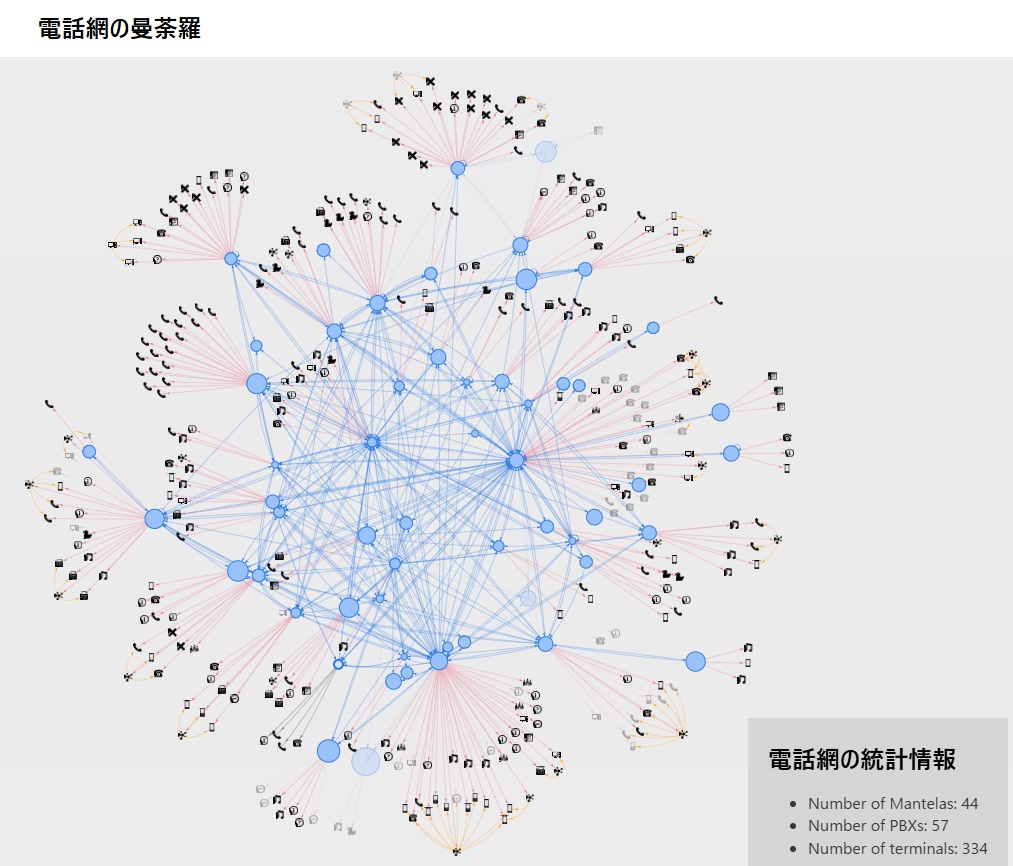東京広域電話網の接続関係を可視化するWebアプリケーションとして「Mantela Viewer」が公開されています。このツールでは、各参加局が公開しているmantela.jsonの所在を指定することで、電話網内の接続関係を視覚的に確認できます。このJSONの内容を確認してみると、独自ドメインを保有している参加者の割合が非常に高いことが分かります。この点からも、「東京広域電話網」の参加者は総じてITスキルが高く、インフラやネットワーク技術に明るい方が多いことがうかがえます。参考までに、私の環境を起点にしたMantela Viewerの表示例は以下の通りです。