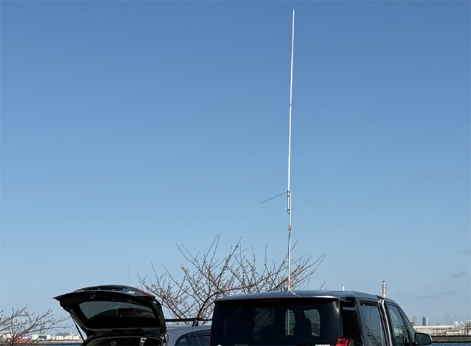 HF帯のアンテナは、ワゴン車の屋根に強力なマグネット基台を取り付け、全長5mのホイップアンテナ(7MHz帯用)を立てて運用し、もしもコンディションが悪ければ、その基台を給電部にしてワイヤー式のツェップライクアンテナ(全長12m)を張る計画でした。