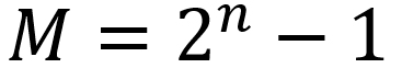 このように整数形のデータ形式で信号処理を行う関係で、デジタル信号処理における信号振幅の上限と下限は意外に小さい値になります。取り扱うデータのビット数(加算器、累算器などの演算回路の処理ビット数)をnとすると、取り扱える最大振幅Mは