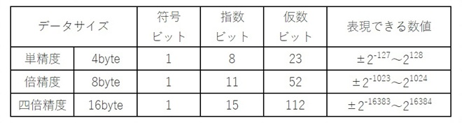 表1 浮動小数点フォーマットで表現できる数値(IEEE754)