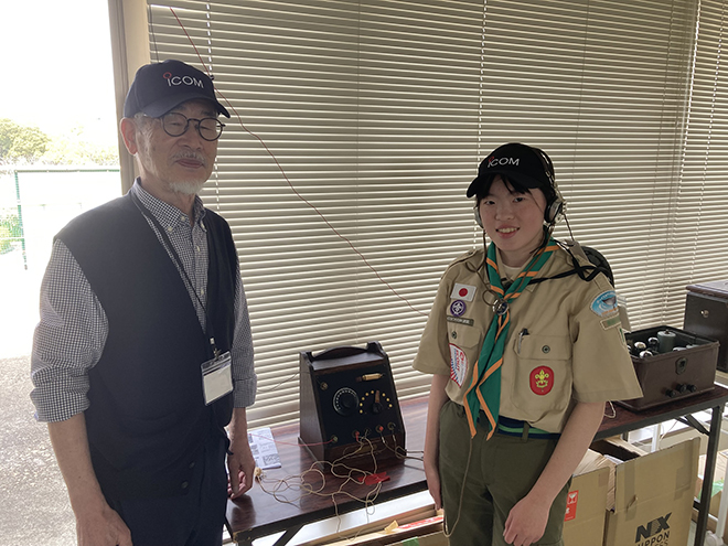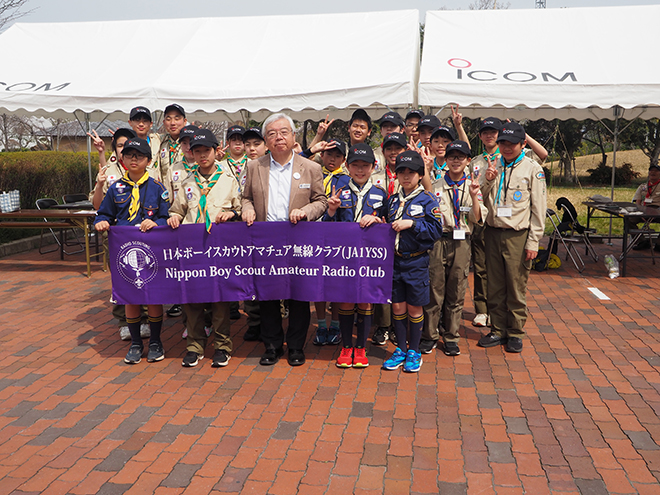 日本アマチュア無線連盟森田会長がサプライズで現地に訪れた。会長は各プログラムの視察を行い、スカウト達を激励した。