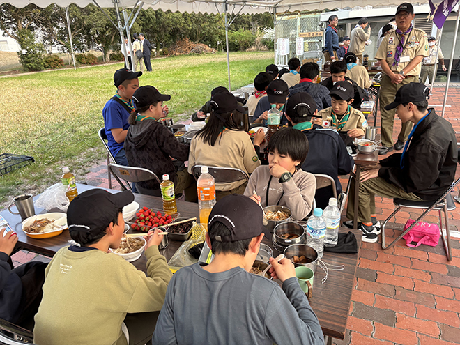 会期中の食事は災害時の訓練となるように、支援者が参加者の栄養と体質を配慮しながら炊き出しを行った。