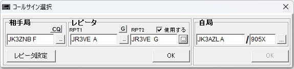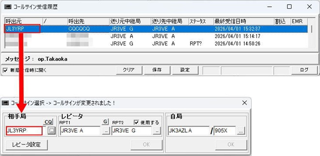 相手局コールサインをインポートした様子