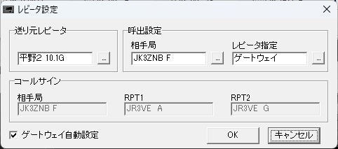 「コールサイン選択」画面でも十分にD-STARレピータを介した交信はできますが、[レピータ設定]をクリックして「レピータ設定画面」にすると、D-STAR運用ではおなじみの[DR]設定感覚で交信ができます。