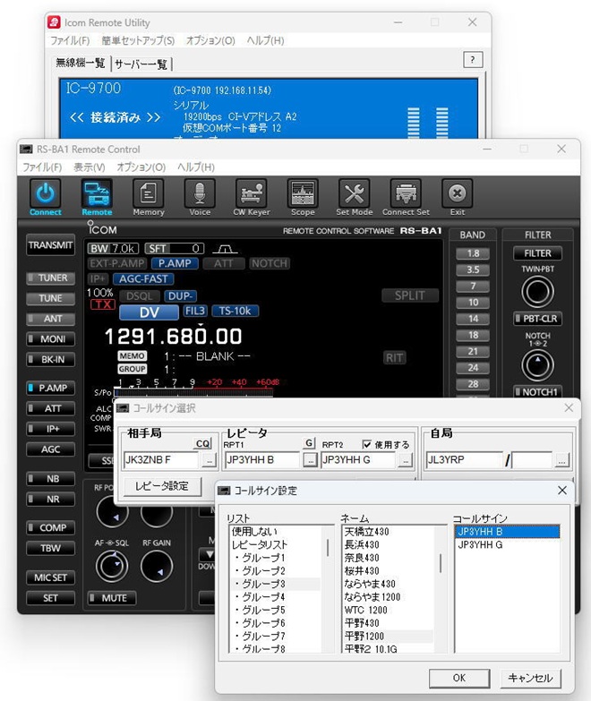 接続する無線機をIC-905からIC-9700やIC-705に切り替えても、一旦RS-BA1に読み込んだレピータリストはそのまま活用できます。