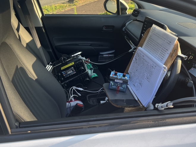 日没後にも7MHz帯の国内QSOを期待したものの、途中から雨が降り始めたため早めに切り上げました。レンタカーでの運用は、車内を濡らせないため、雨天時にはどうしても制約があります。